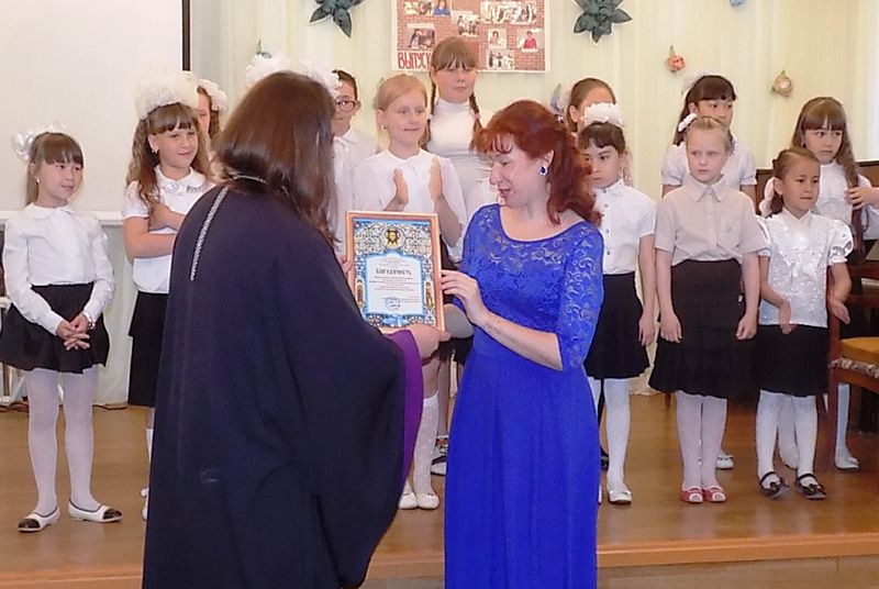 В столь памятный и приятный день прозвучало множество поздравительных слов, не могло обойтись и без вручения различных грамот, благодарностей, похвальных листов. Поздравляя Светлинскую ДМШ с очередным выпуском, а самих выпускников – с преодолением важного этапа в жизни, отец Михаил сказал о том, что значение музыки в жизни людей невозможно переоценить. Как искусство, она способна духовно влиять на человека, вызывая либо возвышенные, либо низменные чувства. То, какой будет музыка, что она даст слушателям, зависит прежде всего от самих её исполнителей.