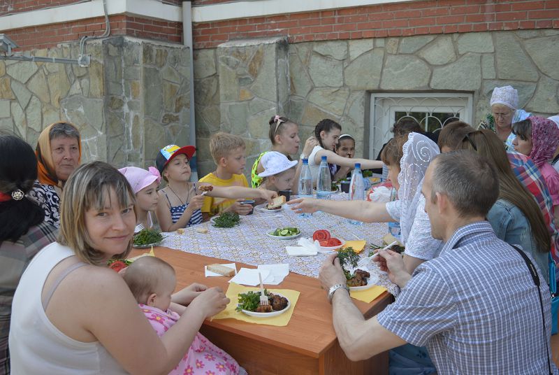 Окончание учебного года в воскресной школе заметно отличалось от подобных мероприятий в общеобразовательных учебных заведениях города. Без всяких формальностей и официоза ребята вместе с педагогами собрались во дворе храма. Там для детишек была приготовлена небольшая игровая программа. После урока-игры ребята весте с учителями собрались за столом, где их ждал вкусный шашлык и другое угощение.