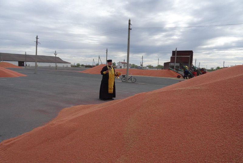 СОВХОЗНЫЙ. 15 мая благочинный Адамовского округа иерей Вячеслав Кочкин совершил освящение семян и полей ЗАО «Шильдинское».