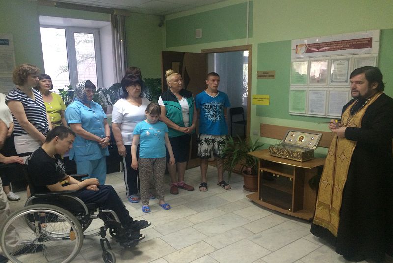 МЕДНОГОРСК. 8 июня 2016 г. Инвалиды, проходящие реабилитацию в лечебном учреждении «Бодрость», молились святителю Луке Крымскому и с верой и упованием прикладывались к его святым мощам.