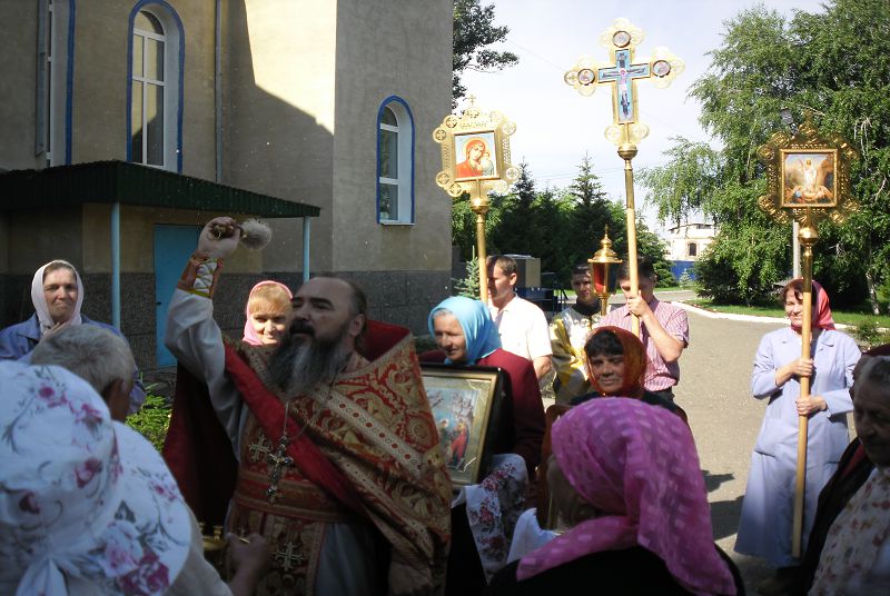 Духовник епархии, благочинный Кувандыкского и Медногорского округов, настоятель храма протоиерей Симеон Антипов и клирик храма иеромонах Антоний (Ткачев) совершили Божественную литургию и крестный ход вокруг храма с чтением Евангелия.