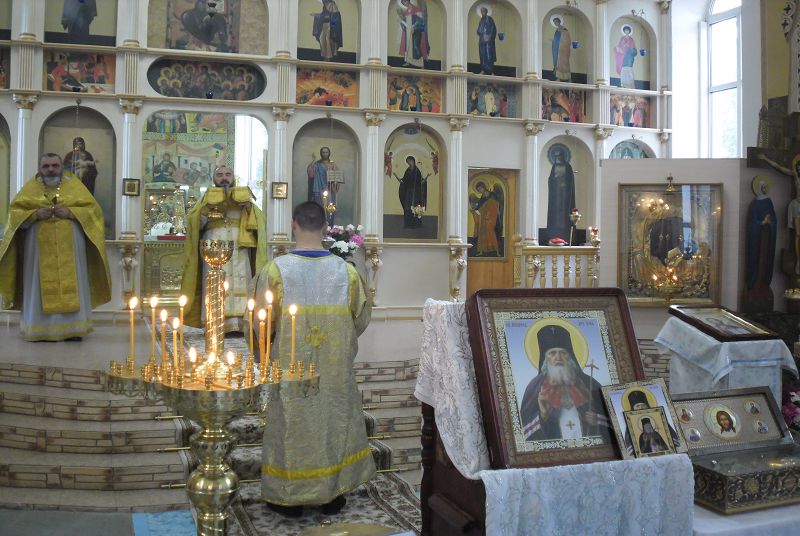 Духовник епархии, благочинный Кувандыкского и Медногорского округов, настоятель храма протоиерей Симеон Антипов и клирик храма иеромонах Антоний (Ткачев) совершили литургию и молебен у ковчега с мощами святителя Луки. Накануне состоялось всенощное бдение с Акафистом святителю.