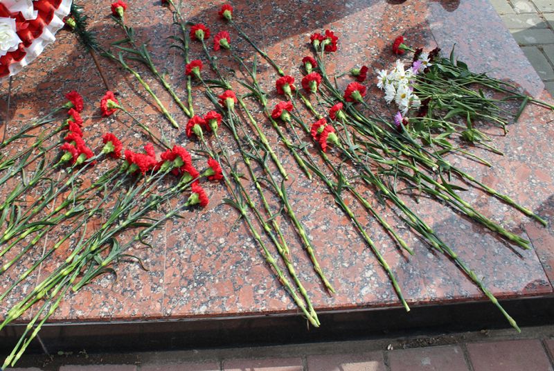 Минутой молчания почтили присутствовавшие память погибших, затем состоялось торжественное возложение венков, гирлянд и цветов к памятному знаку «Выстоявшим и победившим, мёртвым и живым».