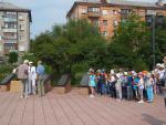 Участники митинга почтили память погибших минутой молчания, после чего возложили венки и цветы к Вечному огню у монумента «Вечно живым».