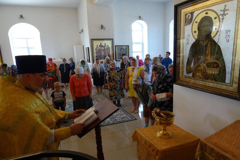 По заамвонной молитве иерей Вячеслав Кочкин освятил новую храмовую икону святого Иоанна Крестителя.