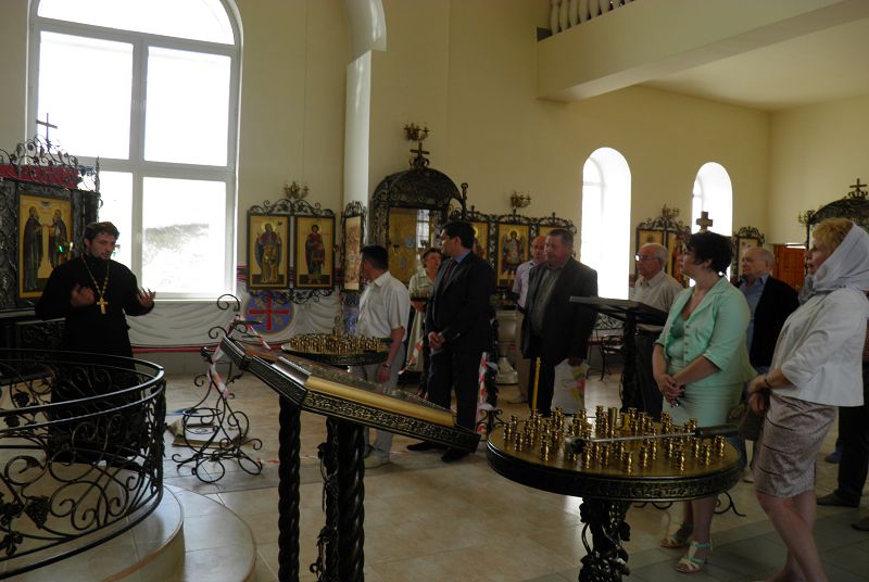 Встреча началась с небольшой экскурсии по храму святителя Николая Чудотворца. Настоятель иерей Максим Малюта рассказал гостям об устройстве храма, о просветительской и социальной деятельности прихода. Была также представлена деятельность воскресной школы при храме и особо значимые проекты, которые осуществляются приходом совместно с администрацией города.