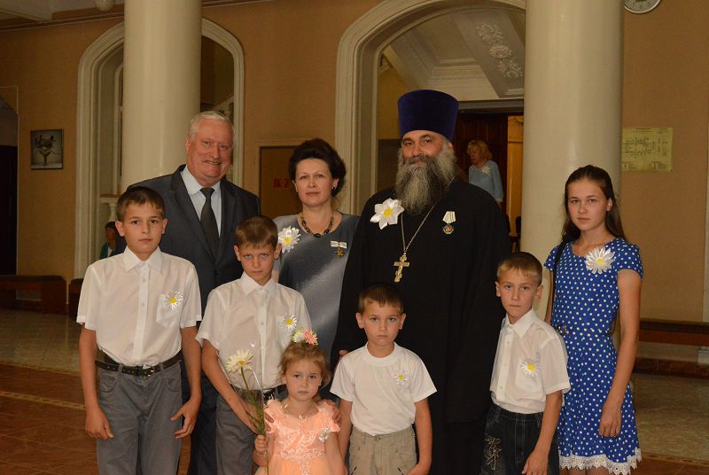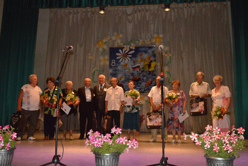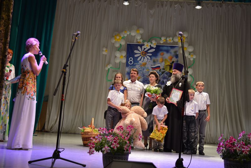 В этот день всего семь пар были награждены медалью «За долгую историю семейного союза, крепость отношений, воспитание детей как достойных членов российского общества». Также чествовали супружеские пары, отмечающие в этом году 50 и 55-летие совместной жизни. На сцене ДК поздравили и многодетную семью протоиерея Георгия Кожеватова с рождением одиннадцатого ребенка.