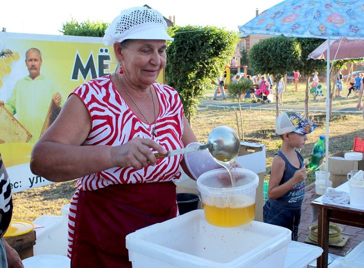 ГАЙ. 14 августа 2016 г. По благословению благочинного Гайского округа, протоиерея Игоря Никифорова в праздник Происхождения (изнесения) Честных Древ Животворящего Креста Господня на территории кафедрального собора святого праведного Иоанна Кронштадтского открылась ярмарка мёда.