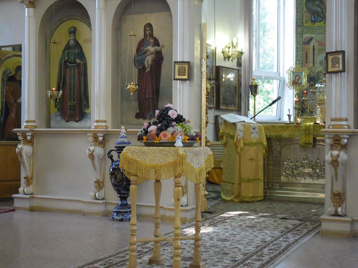 В чине освящения «гроздий» отражена особенность праздника. Обычай освящать плоды – древний, имеющий прямое отношение к Таинству Евхаристии. В это время на Востоке (в Греции) поспевают колосья и виноград и приносятся в храм для благословения в знак благодарности Богу за получение этих плодов, для совершения богослужения и пропитания человека. В Русской Церкви освящаются яблоки и другие плоды с молитвой «на освящение начаток овощей (плодов)».