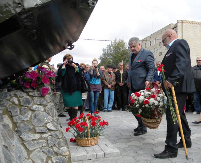 Почётное право открыть его было дано наиболее активным представителям районного Совета ветеранов – Арсену Бийболатову и Валерию Никурадзе. Зазвучала музыка, и с памятника сняли белую ткань.