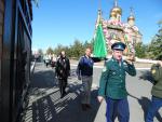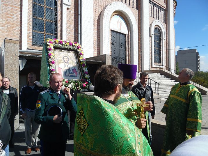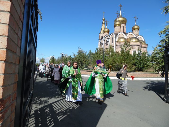 Настоятель собора протоиерей Сергий Кваша и настоятель храма святого Андрея Первозванного с. Хабарного иерей Евгений Селиверстов отслужили Божественную литургию, по окончании которой состоялся молебен с водоосвящением, а после был совершен крестный ход по городу.