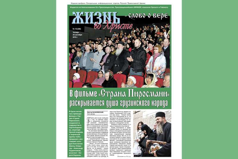 В Орске состоялась премьера фильма о Грузии, созданного в содружестве протоиерея Сергия Баранова, секретаря Орской епархии, и творческой группы «кАтэ продакшн». Об этом событии на 1 и 4 страницах – специальный репортаж Виктора Базилевского «В фильме “Страна Пиросмани” раскрывается душа грузинского народа».