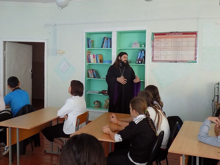 В Гостеприимной общеобразовательной школе священник встретился с учащимися среднего и старшего звена. С ними он провёл беседу на тему «Знание и мудрость». Порассуждав с ребятами о том, какое важное значение в нашей жизни имеют знания, как важно на их основе приобретать мудрость, и о том, что об этих ценностях говорит Священное Писание, священник затронул актуальную для многих школьников тему подготовки к ЕГЭ.