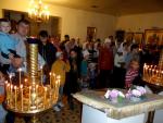 По окончании литургии настоятель храма священник Виталий Кудрявцев обратился к верующим с пастырским словом, в котором отметил, что каждому многое довелось пережить, многое увидеть: радость побед и горечь поражений, военное лихолетье, строительство и развитие родного города. Вера в справедливость, надежда на лучшее будущее, любовь к Отчизне давали жизненные силы. А Православная Церковь, как заботливая и любящая мать, никогда не забывает своих чад: за каждого возносит молитвы ко Господу, в своих Таинствах она укрепляет всех духовно и физически. Отец Виталий пожелал всем молодости души и мудрости ума, добра и помощи Божией.