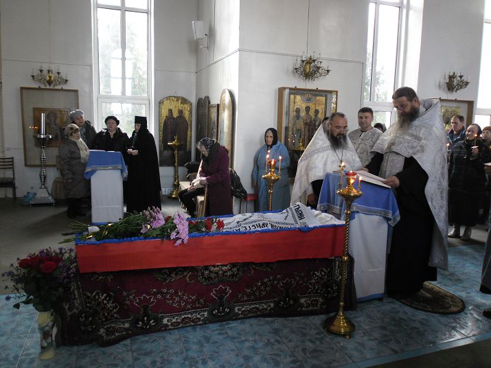 Отпевание совершили духовник епархии, благочинный Кувандыкского округа, настоятель храма протоиерей Симеон Антипов и секретарь Орской епархии, настоятель кафедрального собора св. вмч. Георгия Победоносца г. Орска, духовник Орского Иверского женского монастыря протоиерей Сергий Баранов. Присутствовала настоятельница Орского Иверского монастыря игумения Ксения.