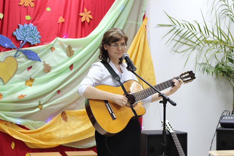 Мало того, Александр Иванов перемежал свою роль ведущего гитарными выступлениями со своими учениками, которых он пригласил на вечер. А завершила его ведущая Елена Головина, задушевно исполнившая под собственный аккомпанемент на гитаре песню «Под лаской плюшевого пледа» из кинофильма «Жестокий романс».