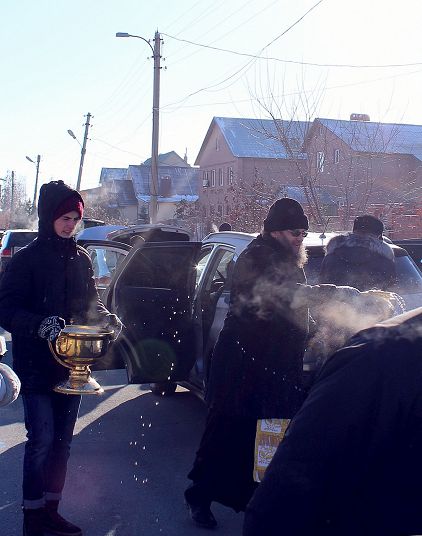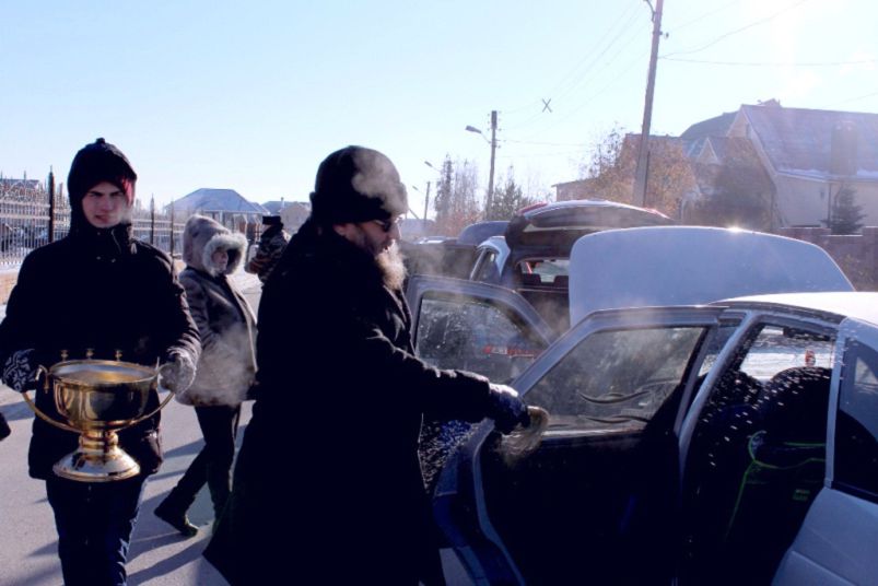 По окончании богослужения на территории кафедрального собора состоялась акция ‒ благотворительное освящение транспортных средств для всех желающих.