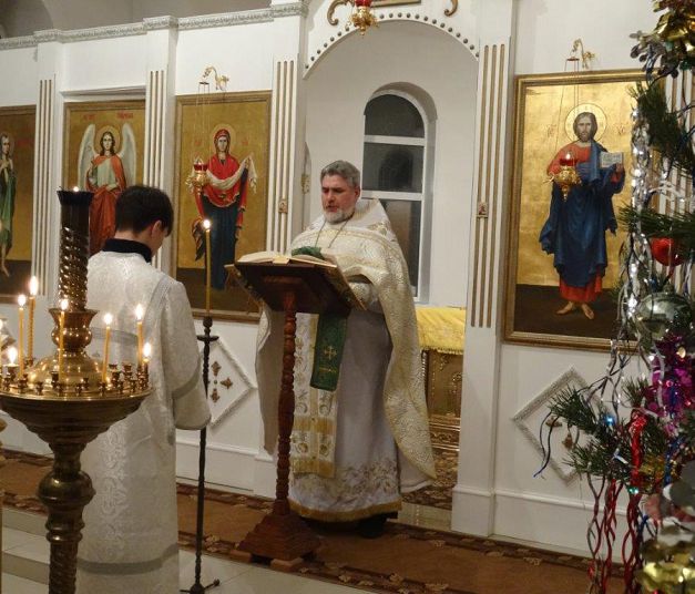 В Рождественскую ночь Всенощное Бдение и Божественную литургию совершил настоятель храма иерей Вячеслав Кочкин. А утром состоялся детский праздник.