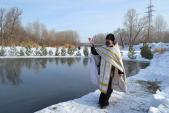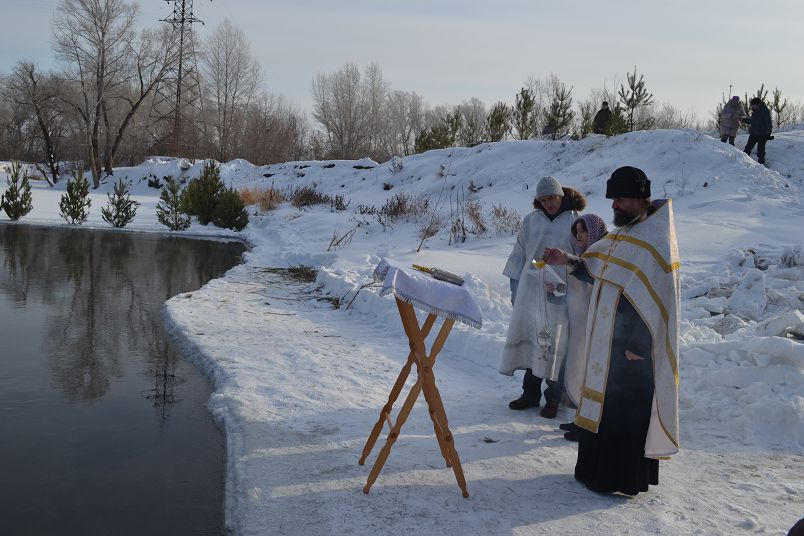 Затем отец Сергий отправился на реку Урал, где уже была подготовлена прорубь для освящения. Там вместе со своими помощниками священник совершил чин Великого освящения воды в реке Урал.