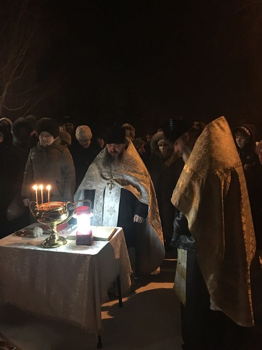 19 января после праздничной ночной литургии протоиерей Симеон Антипов и иеромонах Антоний (Ткачев) совершили чин великого освящения воды в купели храма.