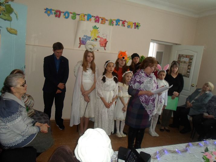Ребята поздравили всех с прошедшими рождественскими праздничными днями и с днем памяти святой мученицы Татианы. Пожилые зрители с умилением и радостью смотрели представление и сделали небольшие сладкие подарки для ребятишек. От воскресной школы, в свою очередь, детишки так же подарили всем небольшие памятные сувениры.