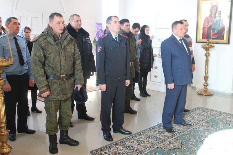 На молебен собрались военнослужащие пограничной заставы, полицейские, сотрудники МЧС, представители администрации района и прокуратуры. Милостью Божией над нашим Отечеством сохраняется мир. Но трудов по его поддержанию совершается много. Пограничники и полицейские в нашем районе и по всей стране всегда заступают на боевое дежурство. Много сил и здоровья необходимо для несения столь многотрудной службы.