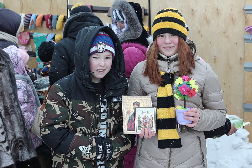 Праздник продолжился в духовно-просветительском центре, где отметили подарками участников конкурса блинов, а также творческие семьи, принявшие участие в выставке «Нарядные санки», проводившимся в городе впервые. Ароматный чай, блинчики и ватрушки по различным рецептурам были главным угощением для присутствующих. Весёлыми частушками порадовали гостей ребята-скоморохи. Покидая центр, родители ребят и гости благодарили за великолепный праздник и хорошее настроение.