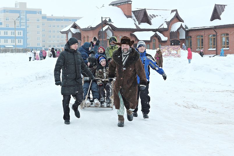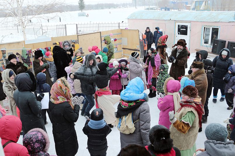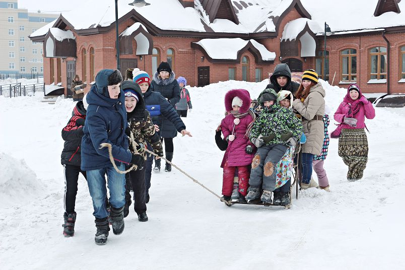 Присутствовали не только прихожане храма, но и жители района. Яркий, переливчатый колокольный звон оживил серый и унылый пейзаж. Несмотря на сильный ветер и пасмурную погоду, ребята из театральной студии «Серебряная рощица», нарядившись скоморохами, читали масленичные стишки – прибаутки, водили хороводы, выполняли шуточные масленичные задания, катались на санях. Своим задорным весельем дети разогрели не только себя и своих родителей, но и разогнали тучи так, что на какое-то время выглянуло солнышко, а ветер стих. Закончились масленичные игры на улице взятием и падением снежной крепости.