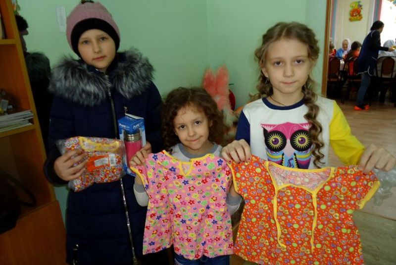 Для младшей сестрёнки Сонечки, которой шесть месяцев от роду, девочки получили необходимую материальную помощь – комплект платьев для грудных детей и детскую бутылочку для кормления.