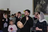 После Божественной литургии педагоги, воспитанники, родители и все желающие собрались в светлом и теплом зале школы. Весна уже на пороге, но погода внесла свои коррективы в проведение праздника, чем ничуть не огорчила собравшихся. От ненастья укрылись в уютных помещениях храма – в тесноте, да не в обиде!