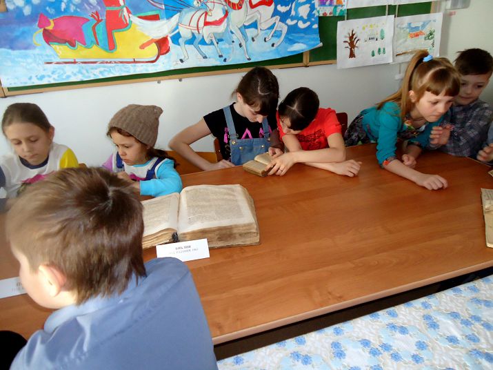Вниманию ребят предстали: Библия, изданная в 1863 году, Евангелие от 1893 года, Новый Завет – 1897 г., Лествица преподобного Иоанна Лествичника – 1852 г. и др. Эти старинные книги, напечатанные в конце XIX и начале XX веков, являют самую ощутимую связь времён и поколений. Из рода в род их передавали и хранили более ста лет. Можно только догадываться, сколько людей читали эти уникальные издания, несущие слово из поколения в поколение. В очередной раз убеждаемся, что вечные истины не подвластны ни времени, ни политической идеологии.