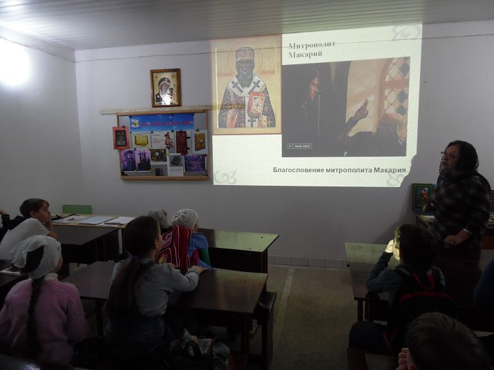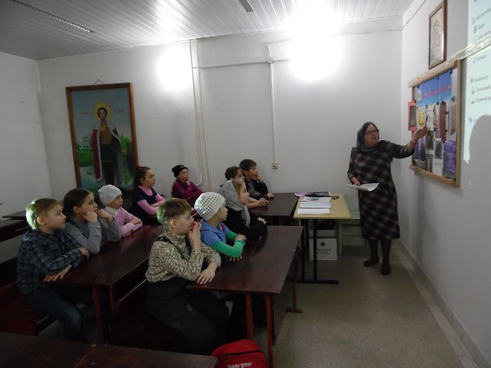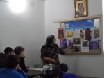 НОВОТРОИЦК. 12 марта 2017 г. В преддверии празднования Дня православной книги в воскресной школе имени святого благоверного князя Александра Невского при Петропавловском соборе директор воскресной школы Татьяна Горянина провела урок-презентацию «Православная книга – окно в мир».