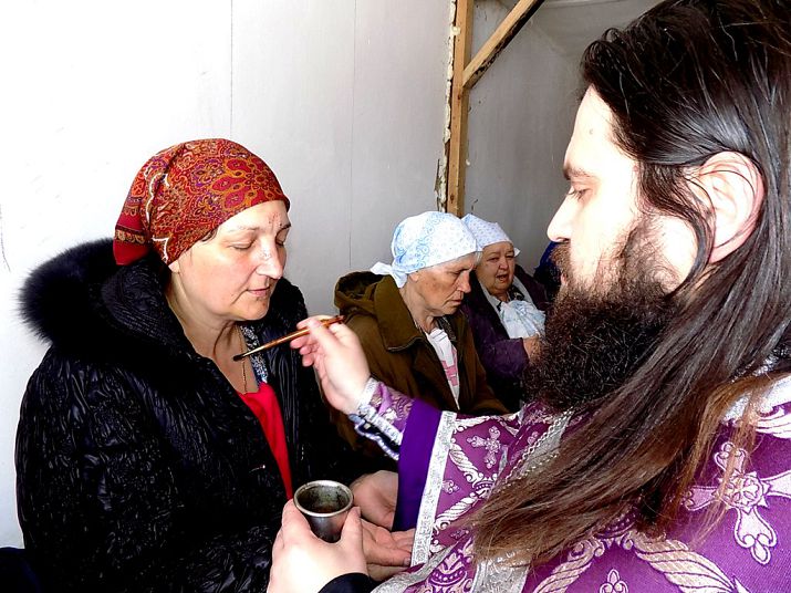 СВЕТЛЫЙ. 15 марта 2017 г. Настоятель храма Покрова Пресвятой Богородицы иерей Михаил Рябинов в молитвенном доме посёлка Актюбинского Светлинского района совершил Таинство Елеосвящения.