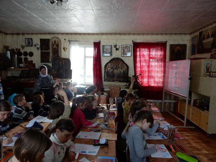 В классе детей повсюду окружали книги: старинные богослужебные – экспонаты музея прихода, выставка книг из библиотеки прихода, различные периодические православные издания – журналы, газеты. В такой обстановке легко усваивался материал об истории книгопечатания в России.