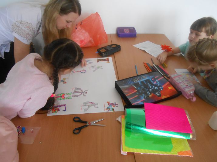 В теплой и радостной атмосфере прошел урок в младшей группе. Малыши с удовольствием повторили церковно-славянский алфавит, знание которого закрепили росписью букв и созданием своеобразной азбуки.