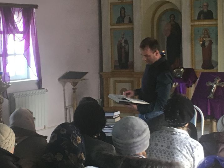 Урок провел настоятель храма иерей Александр Курсаков вместе с Евгением Ершовым – учащимся Орских катехизаторских курсов имени апостола и евангелиста Иоанна Богослова, активистом православного братства, зарождающего при храме. Они рассказали собравшимся о книгах, которые используются на богослужениях, на частных молитвах и требах. Содержание книг, история возникновения и назначение различных томов книг – обо всем этом многие слышали впервые. Особенный интерес у слушателей вызвала книга под названием «Типикон» – рассказ о его возникновении, влиянии на Русскую Православную Церковь и роли Типикона в жизни каждого православного христианина.