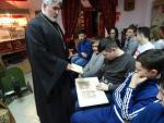 С рукописными и первыми печатными книгами на Руси, а также историей их появления школьников и студентов техникума познакомил благочинный Адамовского округа Орской епархии иерей Вячеслав Кочкин. С 13 по 15 марта встречи прошли во второй Адамовской школе, районной детской библиотеке и народном музее. В этом году молодое поколение смогло познакомиться с частью книг лицевого летописного свода XVI века: «Слово о Куликовом сражении» и «Иудейская война». Над Сводом трудились лучшие писцы и иконописцы царя Ивана Грозного.
