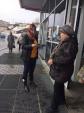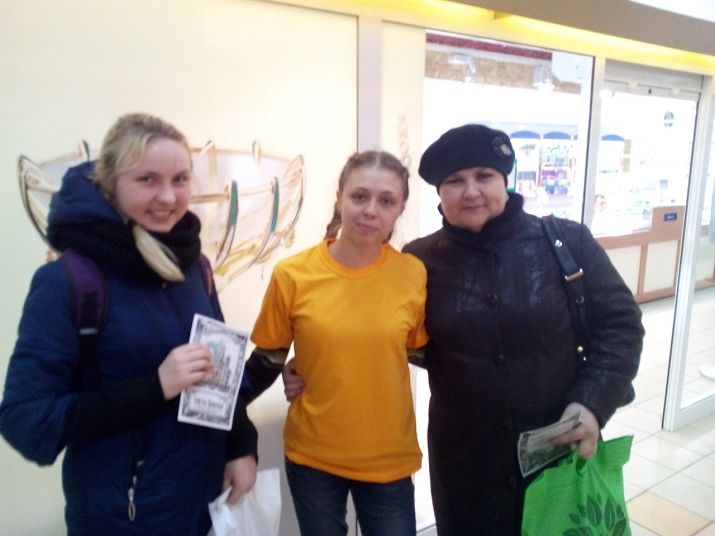 Ребята разделились на четыре группы, по трое в каждой, и раздавали небольшие листовки о празднике Пасхи с подарочными магнитиками прохожим и посетителям крупных торговых центров города.
