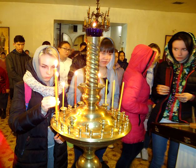 Юноши и девушки со вниманием восприняли разговор на тему духовно-нравственного воспитания, прежде всего, самих себя и об основах духовного труда над своей душой. На экскурсии будущие медики осмотрели внутреннее устроение и убранство храма, помолились о своих родителях и сродниках.