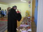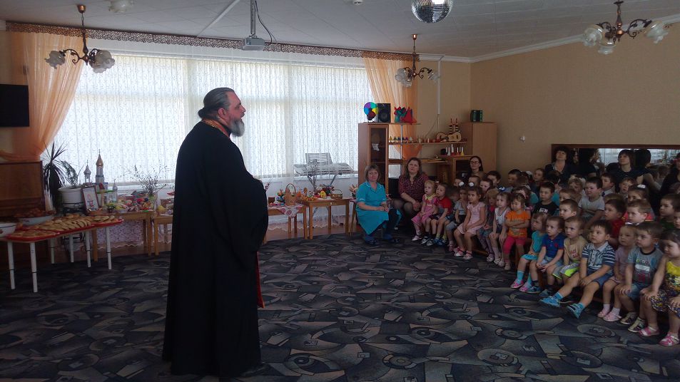 Иеромонах Антоний (Ткачев) освятил куличи, паски, яйца, окропил ребят святой водой, а в детском саду «Теремок» по просьбе заведующей – освятил ее кабинет.