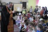 В завершении встреч батюшка давал детям наставление всегда оставаться чистыми, светлыми, простыми, а воспитателям быть как дети любящими и незлобивыми. Малыши и их воспитатели благодарили отца Антония, а ребята из садика «Сказка» порадовали и выставкой поделок и рисунков к Пасхе Христовой.