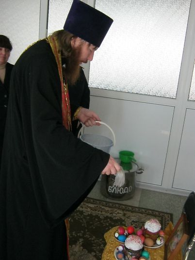 По окончании праздничной молитвы священник окропил святой водой, принесенные работниками аэропорта, пасхальные угощения – заботливо украшенные куличи и яйца, рассказал о празднике Воскресения Христова и пожелал счастья, мира и добра.