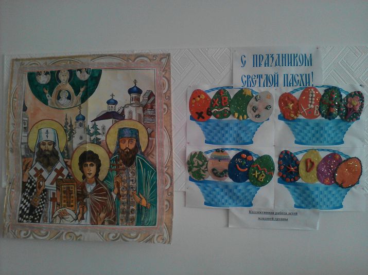 В творческом мероприятии приняли участие дети младшей группы воскресной школы, выполнившие коллективную работу пластилиновой аппликации на тему «Пасхальное яичко», а также учащиеся кружка изобразительного искусства духовно-просветительского центра храма под руководством преподавателя Владимира Николаевича Аникиенко. Основными темами экспозиции были: «Пасха глазами детей» и «Дорога к храму». Вниманию неравнодушных зрителей были также представлены работы самого Владимира Николаевича на тему «Страстная седмица», напоминающая нам о том, что послужило спасению людей и что предшествовало великой пасхальной радости.