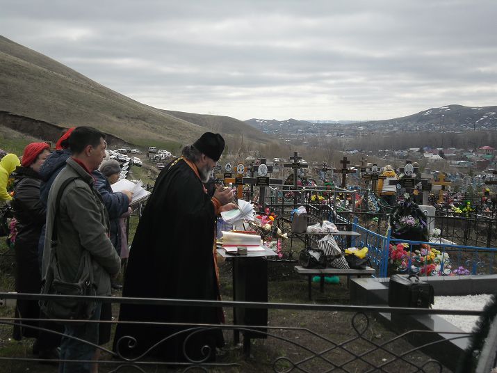Духовник епархии, благочинный Кувандыкского округа, настоятель храма протоиерей Симеон Антипов и клирик храма иеромонах Антоний (Ткачев) после богослужения совершили заупокойные моления на всех городских кладбищах и, по просьбе верующих, в селе Адаево.
