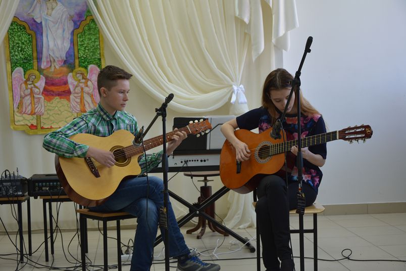 Открыл праздничное мероприятие настоятель храма иерей Александр Курсаков. Затем зазвучала нежная пасхальная песня в исполнении вокальной группы храма св. Пантелеимона. Вокальную тему продолжил Александр Иванов, руководитель инструментальной группы «Аккорд», организованной на базе духовно-просветительского центра с 2016 г. Прозвучала авторская песня «Пасхальная».