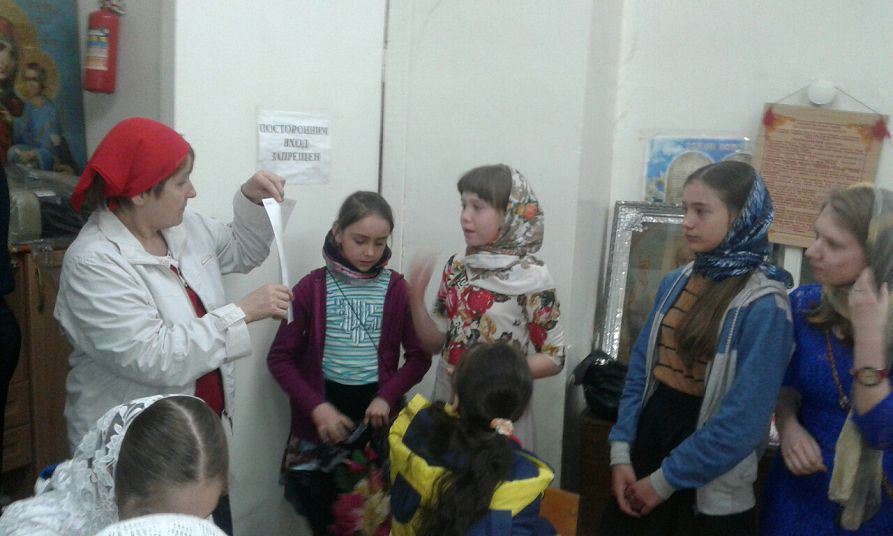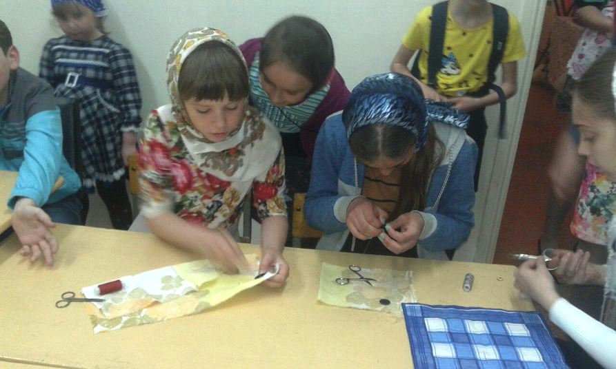 В воскресной школе храма три команды воспитанниц – «Ангелы», «Цветы» и «Пончики» – соревновались в умении правильно и быстро пришить пуговицу, нарисовать поздравительную открытку к празднику, отгадать загадки, прочитать стихотворение о женах-мироносицах, быстро и вкусно приготовить салаты из определенного набора продуктов.