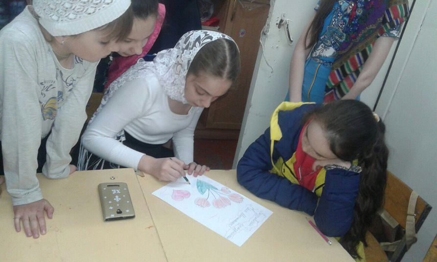После Божественной литургии воспитанники воскресной школы во главе с преподавателями очень трогательно поздравили матушку Наталию с праздником православных женщин, пожелали благословения Господня на служение евангельскому духу милосердия и любви.