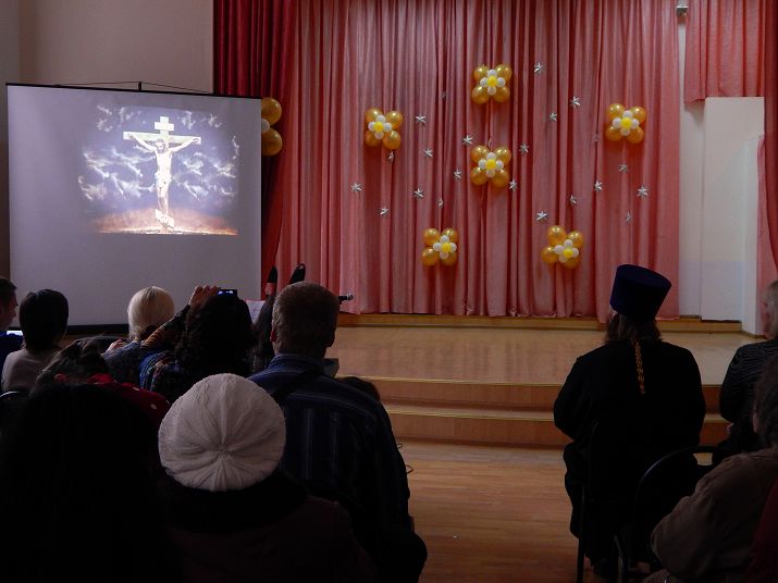 ОРСК. 30 апреля 2017 г. На сцене школы № 88 воскресная школа «Архангел Михаил» провела Пасхальный праздник для прихожан Михаило-Архангельского храма, жителей г. Орска, п. Степного (Гудрон), п. Нагорного, п. Новая Биофабрика, с. Ора.