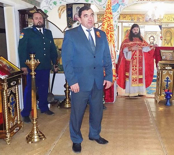 Принятие присяги прошло в храме Покрова Пресвятой Богородицы п. Светлого. Как полагается – при открытых Царских вратах, перед Крестом и Евангелием. На торжественное мероприятие были приглашены почётные гости – глава района Виктор Тараканов и руководители силовых структур, с которыми сотрудничают светлинские казаки.