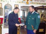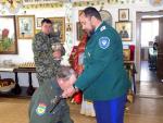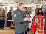 С поздравительными речами выступили начальник отдела Пограничного управления ФСБ России по Оренбургской области в п. Светлом Дмитрий Козлов и врио начальника отделения полиции МОМВД России «Ясненский» Дмитрий Устинов. Как оказалась, главный пограничник района прибыл не с пустыми руками: Благодарственных писем от руководства отдела за успешное сотрудничество и в связи с празднованием дня святого Георгия Победоносца были удостоены иерей Михаил Рябинов и шесть членов хуторского общества, в том числе – атаман Пётр Степанов. Далее состоялось вручение благодарностей казакам от руководства Первого отдела Оренбургского казачьего войска.